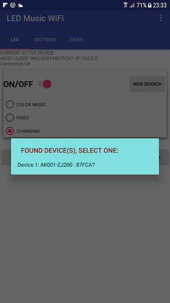 Aplikasi ini menawarkan tiga mode utama: MUSIC COLOR, FIXED COLOR, dan CHANGING COLOR. Pengguna dapat menikmati pengalaman tanpa iklan dan mendapatkan indikasi grafik spektrum dari sinyal mikrofon. Dengan banyak pengaturan untuk menyesuaikan mode MUSIC COLOR, pengguna dapat mengatur kombinasi frekuensi dan amplitudo untuk setiap komponen RGB, serta tingkat kecerahan LED RGB. Mode latar belakang dengan notifikasi juga memungkinkan aplikasi berjalan tanpa interaksi pengguna.